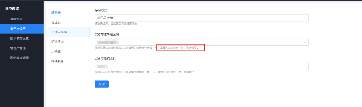 登录腾讯云后台,搜索COS后进入功能,创建新的存储桶,把参数填写到后台即可。