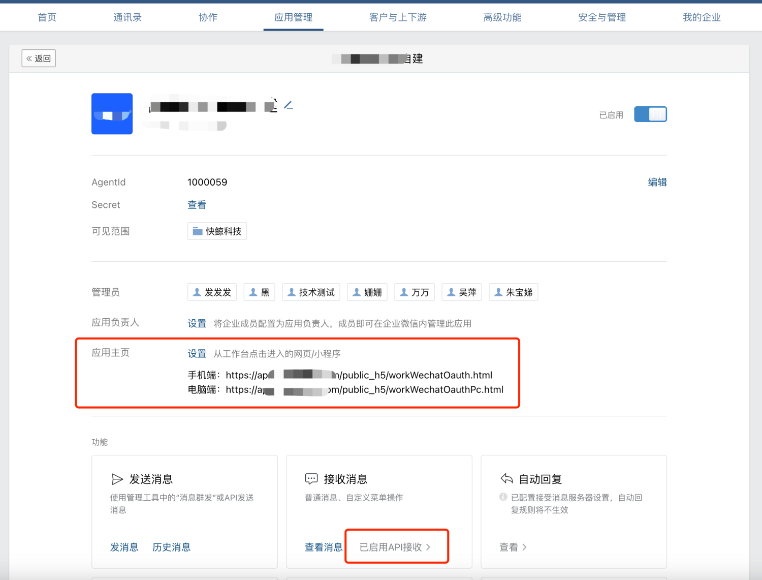 2)企微自建应用需要绑定应用主页。