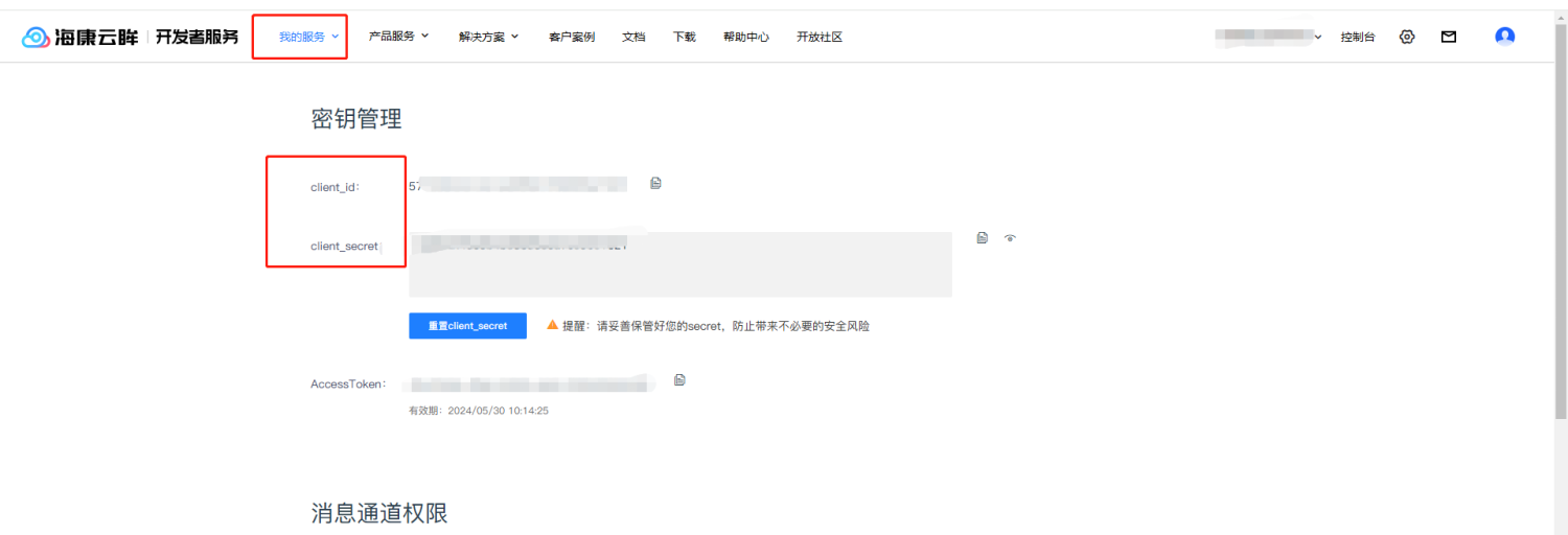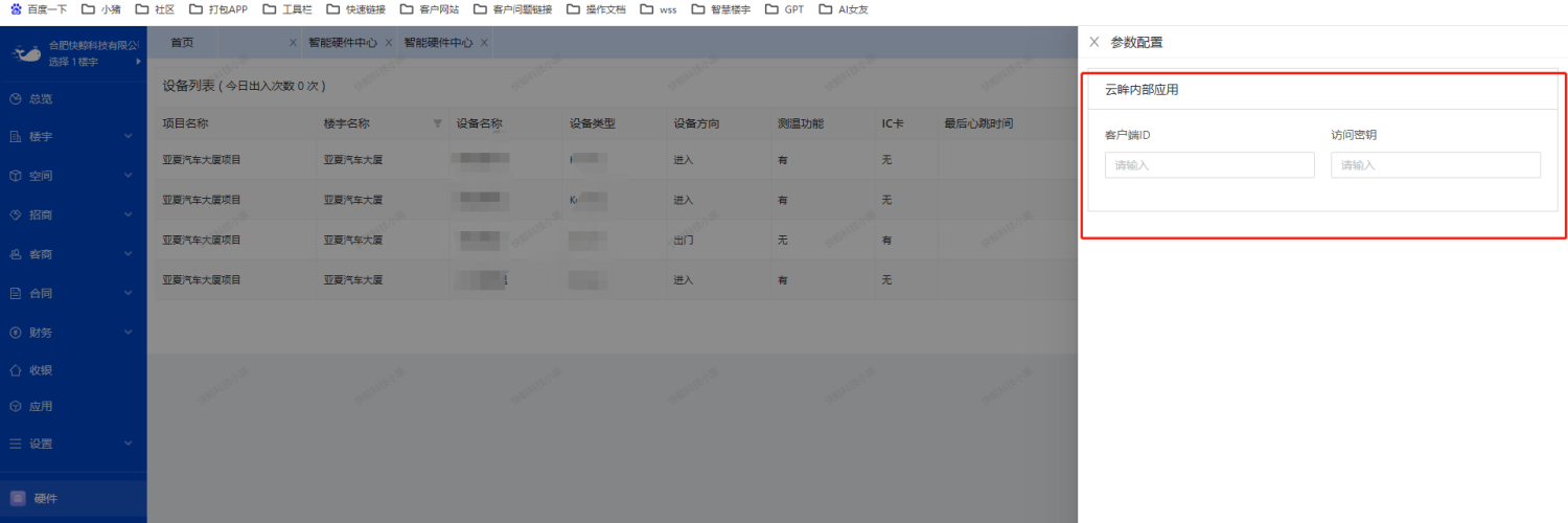 登录开发者内部协议后台,点击我的服务,密钥管理。获取ID和秘钥填写到机构后台,人脸门禁右上角的参数设置