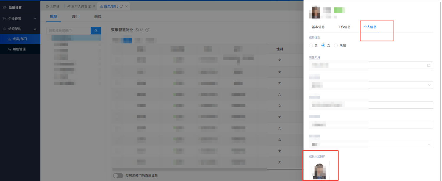 机构后台-系统设置-组织架构-编辑人员-个人信息-人脸照片