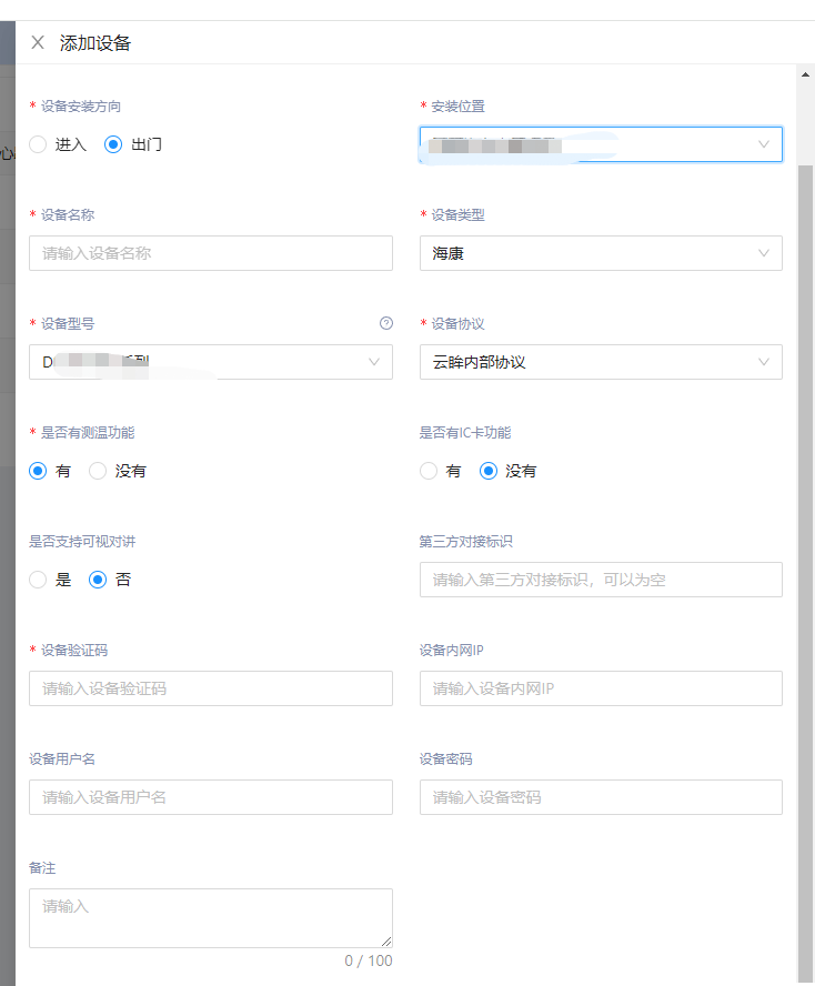 根据设备对应的型号选择,填写设备验证码。保存后自动同步到海康后台