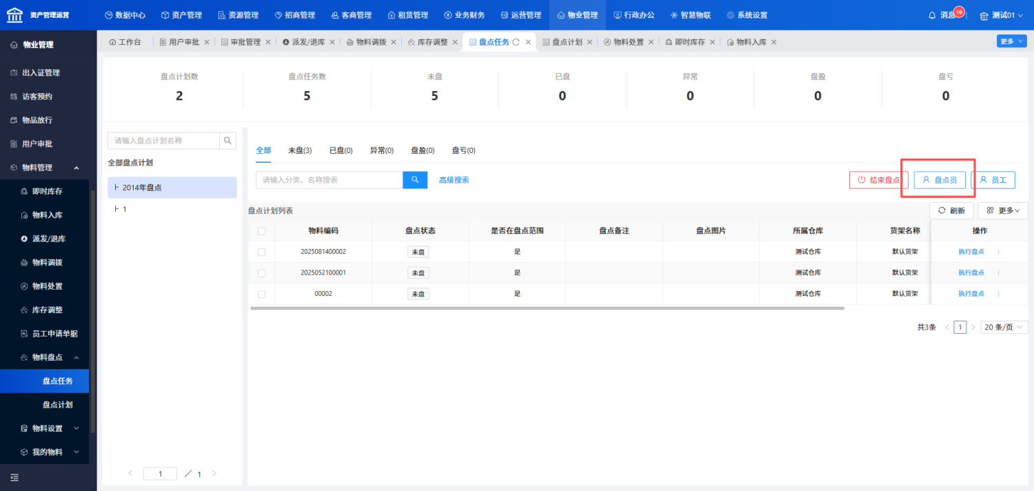 分配任务:设定盘点人员及其盘点的类型。当盘点员打开盘点应用只可看见对应类型下的物料,然后进行物料盘点。