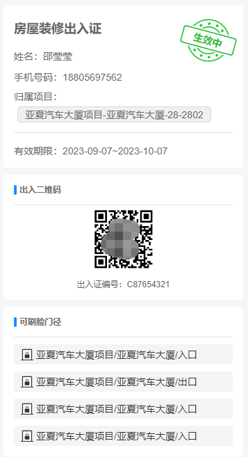 归属项目:生成的出入证只能用于所选择的归属楼宇。
