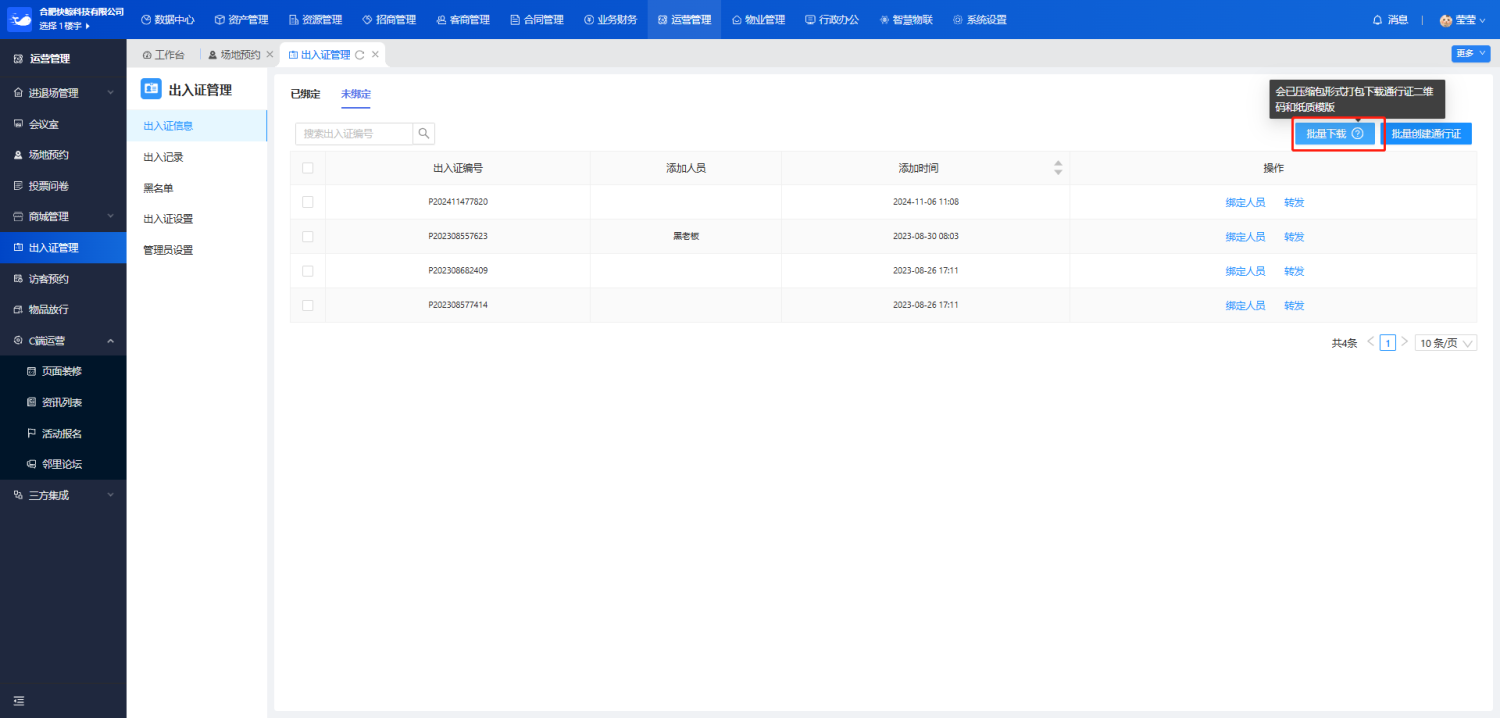 1 )在【出入证信息】-【未绑定】中快速导入一批未绑定人员的出入证。