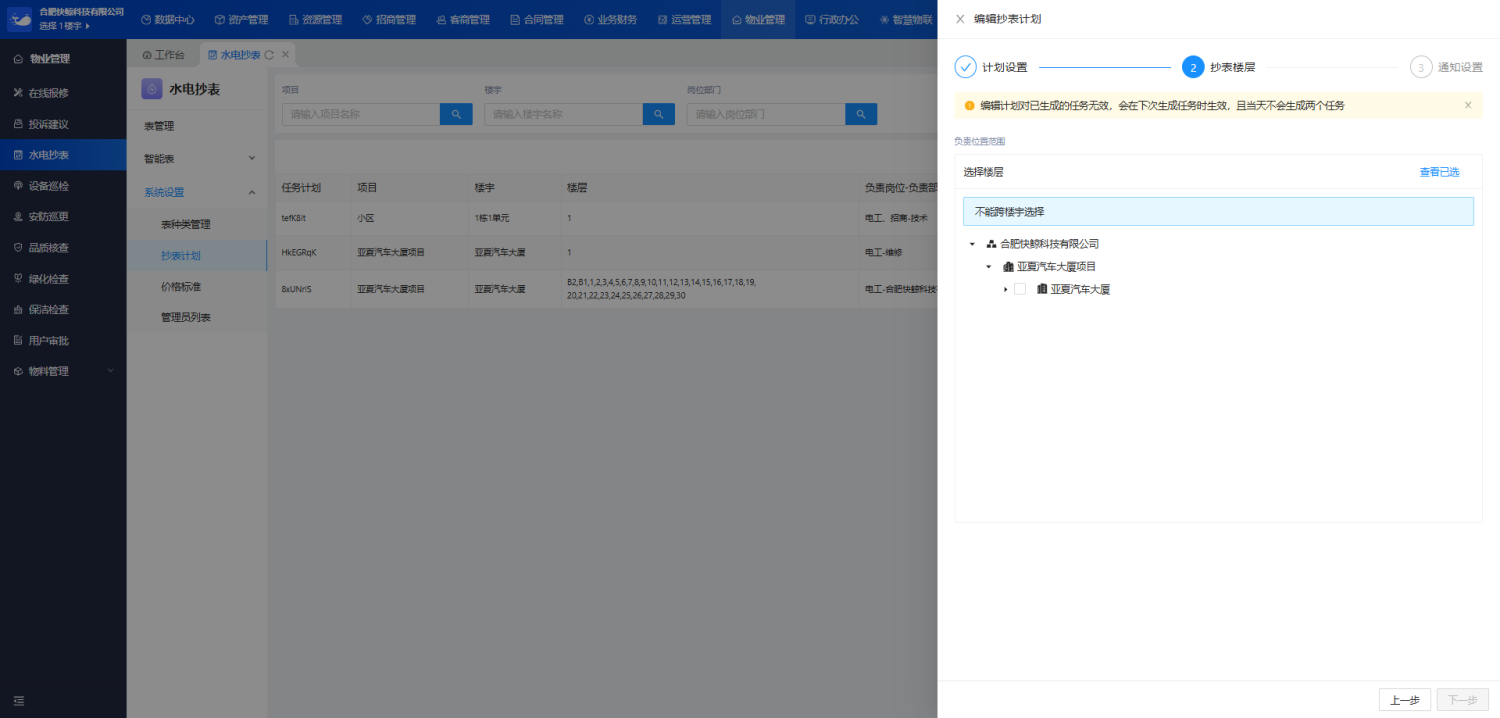 抄表楼层:该计划所应用的楼层。