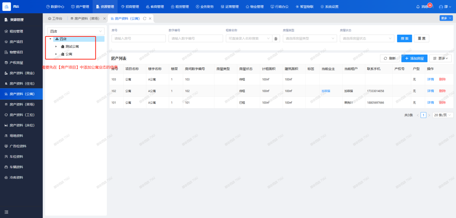 如需添加房源信息,请先在【房产项目】完成项目及楼宇创建后,再来此版块进行房源添加或导入。