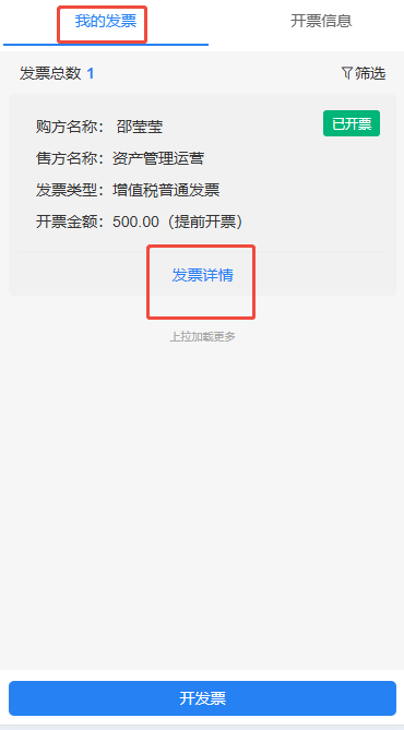 1.2.2 在【账单详情】中找到【开具发票】并进入