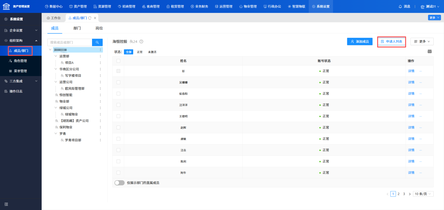 A4:您用超管账号登陆机构后台的【组织架构】-【成员/部门】-【申请人列表】进行身份审核即可。