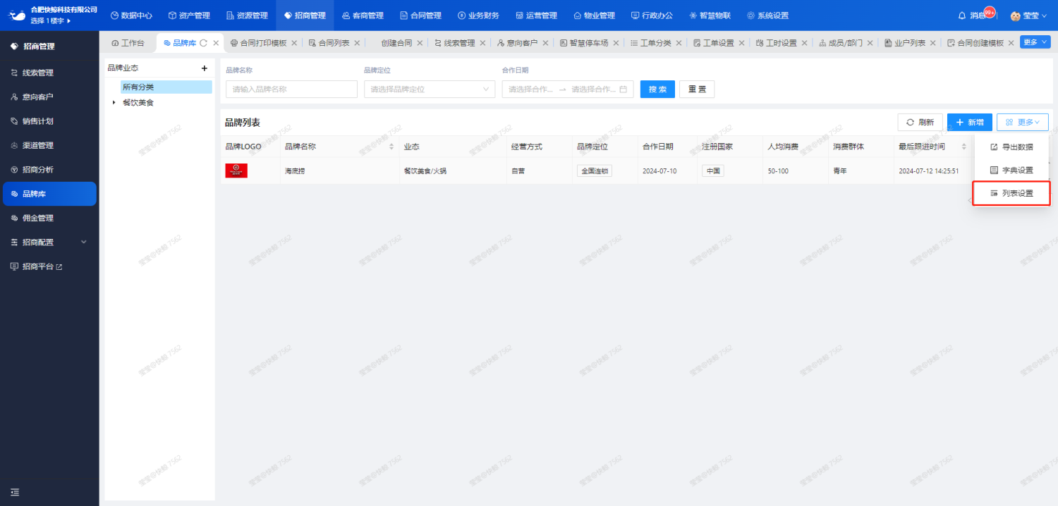 在合同签署打印时,支持合同中展示对应品牌信息。如有需要再【合同管理】-【合同设置】-【合同打印模板】中选择${租客经营品牌}字段,当租客有对应品牌时,合同打印会展现该品牌信息。