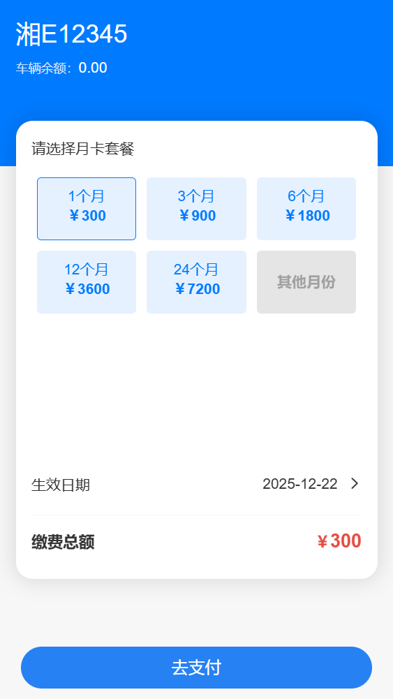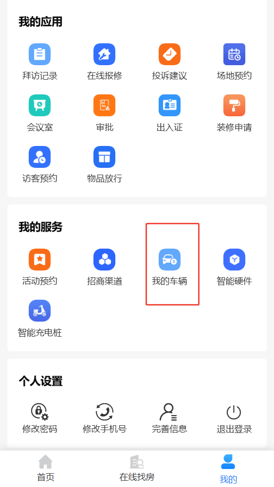 租户在线申请月租车。在【我的】-【我的服务】-【我的车辆】点击进入已绑定车辆,点击【绑定新的车场】点击进入需要购买月停车套餐的区域,选择【月租车办理/续费】,进行月付费购买。