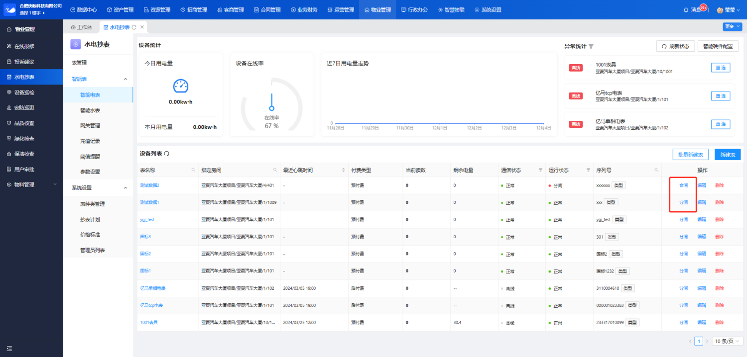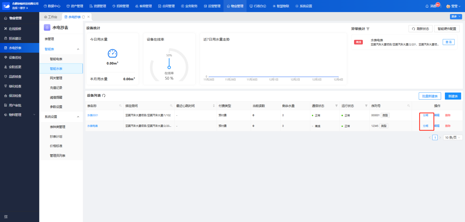 也可在【智能表】-【智能电表/水表】设置单个水电表阈值提醒,剩余量小于该值触发提醒。
